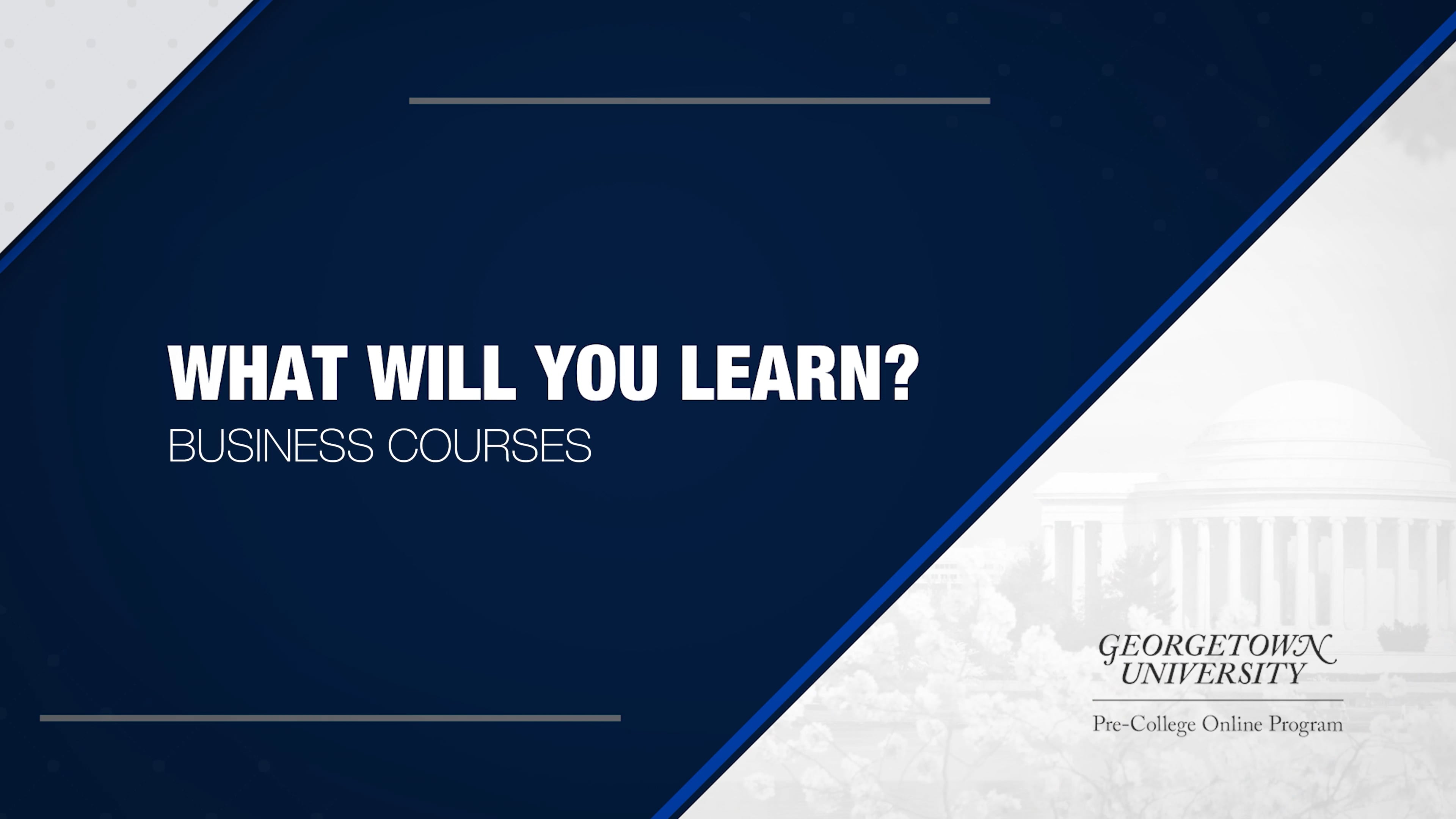 Thinking about a future in entrepreneurship, investing, marketing, or international relations? If you are intrigued by these business-related subjects and want to explore them in-depth before college, here is your chance. Georgetown University now offers pre-college online courses for high school students ages 13 and older. Each course features dynamic video lessons by renowned Georgetown faculty and access to mentors. The program is available year-round, and the online format enables you to study anywhere, anytime, at your own pace. This flexibility enables you to take multiple courses and explore a variety of business-related subjects.