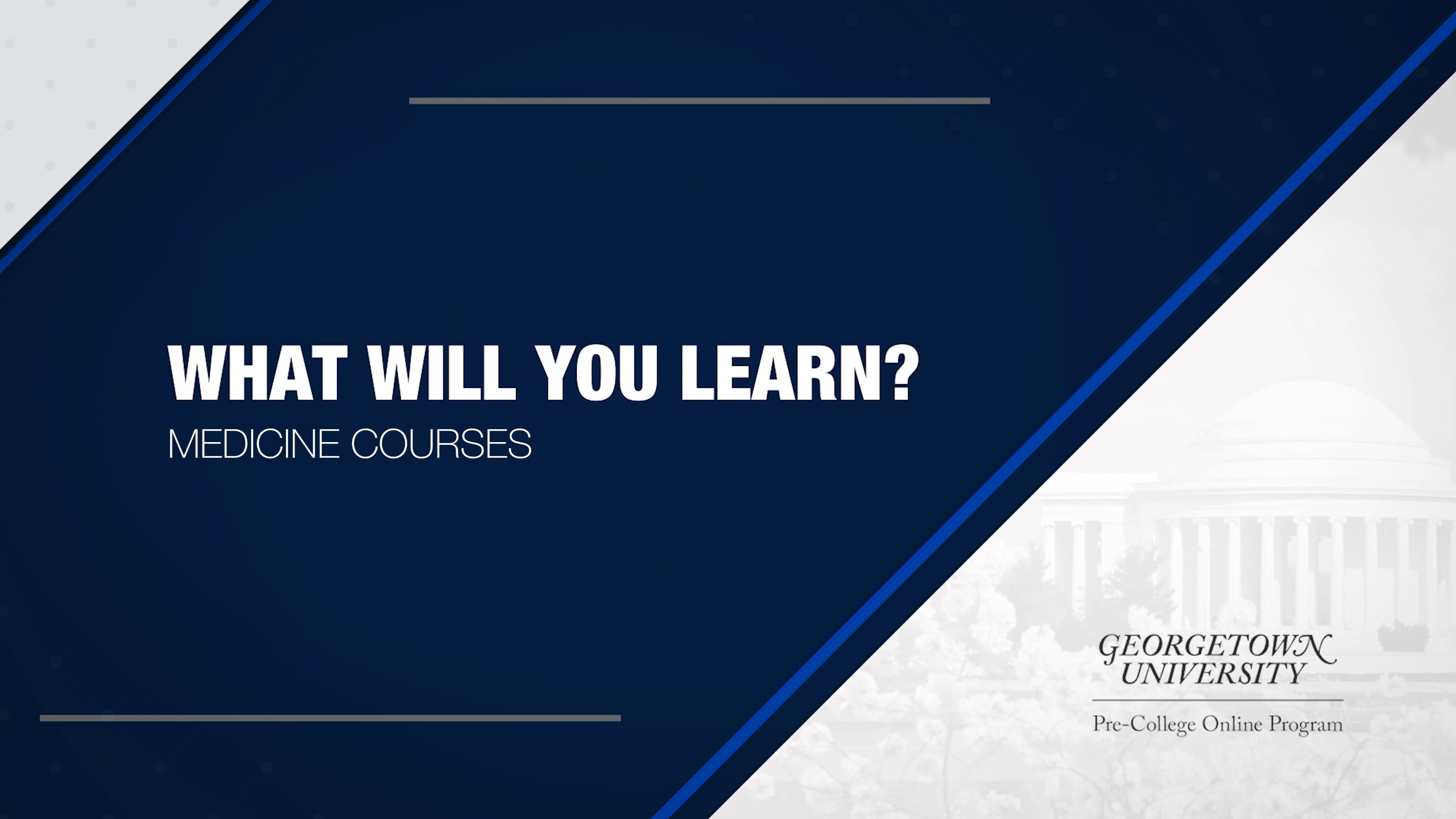 High school is a great time to see where your interests might lead you. Are you curious about the different career paths you can take in the field of medicine? Our pre-med online courses offer the perfect way to get a head start on your college education and your future. You’ll find a rich variety of subjects to try out, learn with acclaimed Georgetown University professors, and even get insights from practitioners in your field of interest. The online format is flexible, allowing you to take as many courses as you'd like anywhere, anytime, at your own pace. Choose from college credit and non-credit courses, or opt for a combination of both to kick off your college planning right. If you are thinking about a future in medicine, we can help you find your fit.