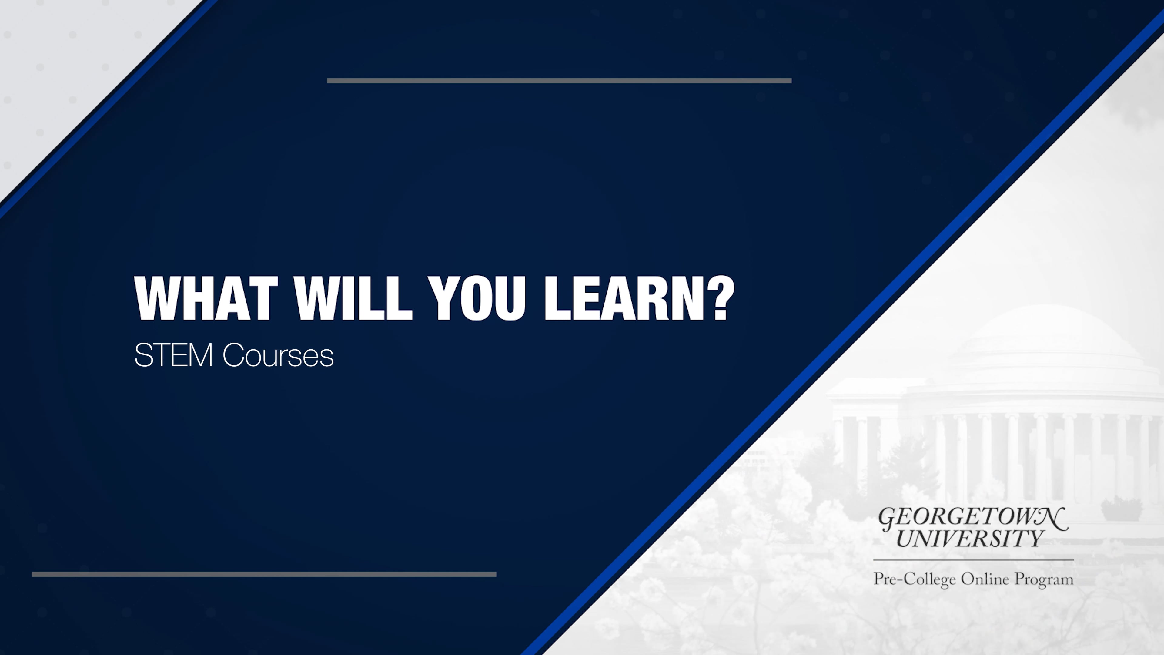 - Experience what it’s like to take STEM courses designed by Georgetown University faculty while you’re still in high school.